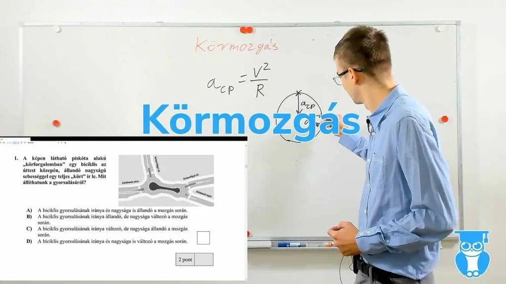 A 2020 májusi emelt szintű fizika érettségi egyik feladatában egy piskóta alakú körforgalomban haladó biciklis gyorsulásáról szóló állítások közül kellett kiválasztani a helyeset.