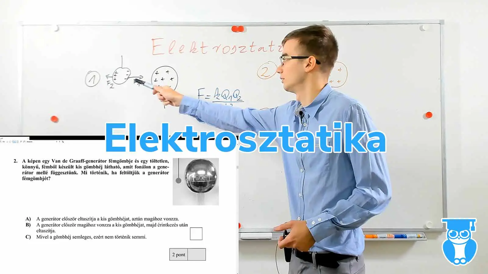 A 2020 májusi emelt fizika érettségi egyik feladatában a Van de Graaff-generátor fémgömbje és egy mellé függesztett töltetlen, könnyű, fémből készült kisebb gömbhéj közötti…
